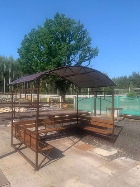 Цельносварная беседка производства компании ОДО Каскадэнергомонтаж предназначена для обеспечения комфортного отдыха на открытом воздухе.